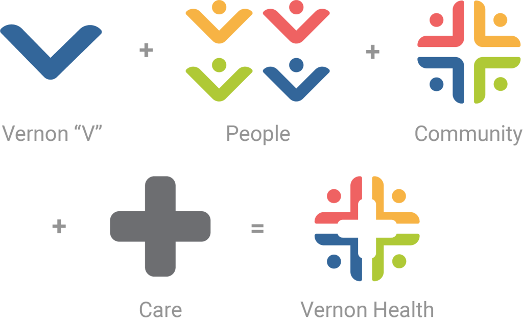 Our logo brings together the people, community, and care that define Vernon Health.